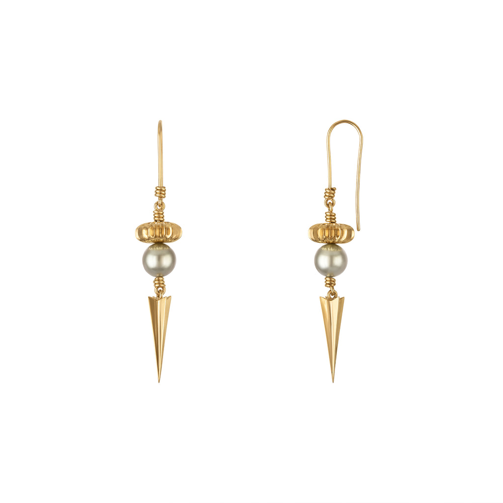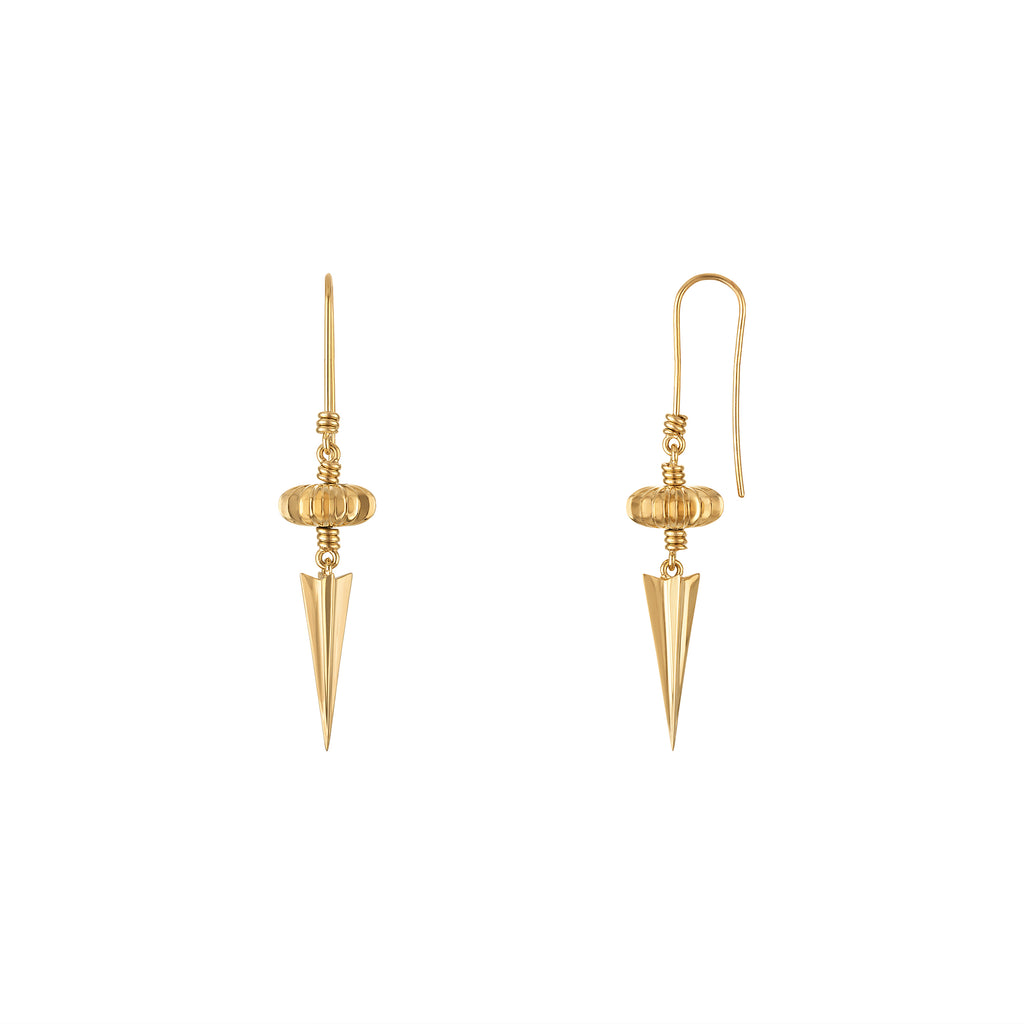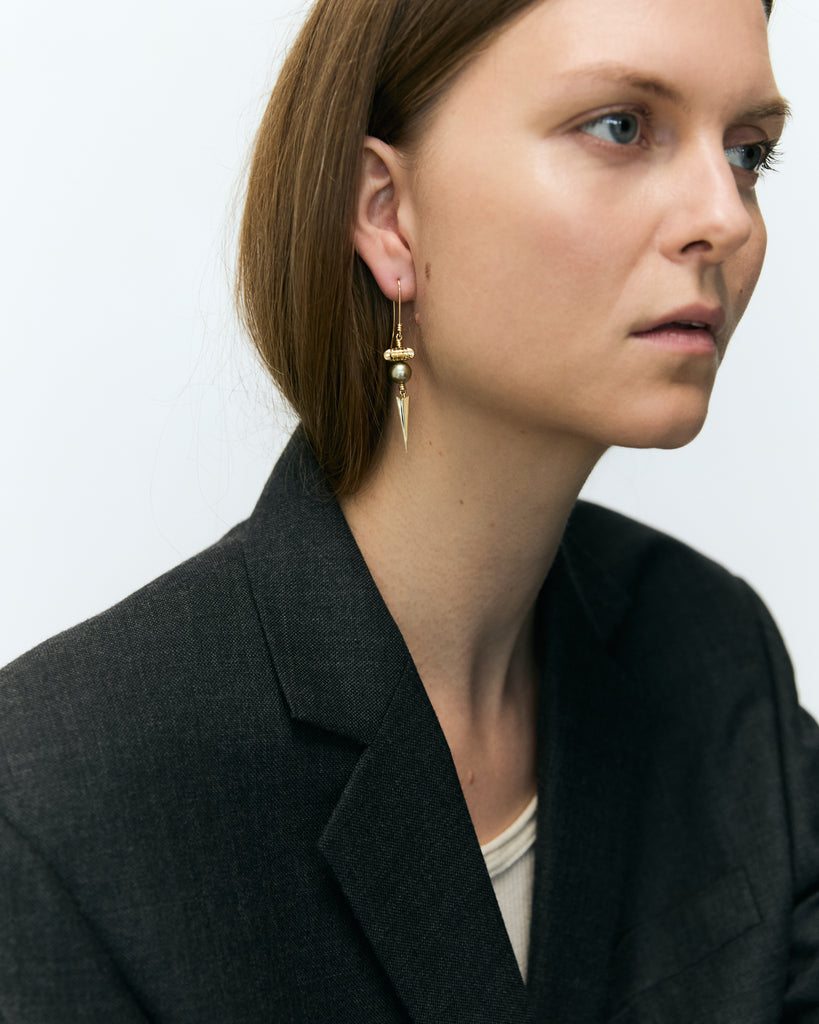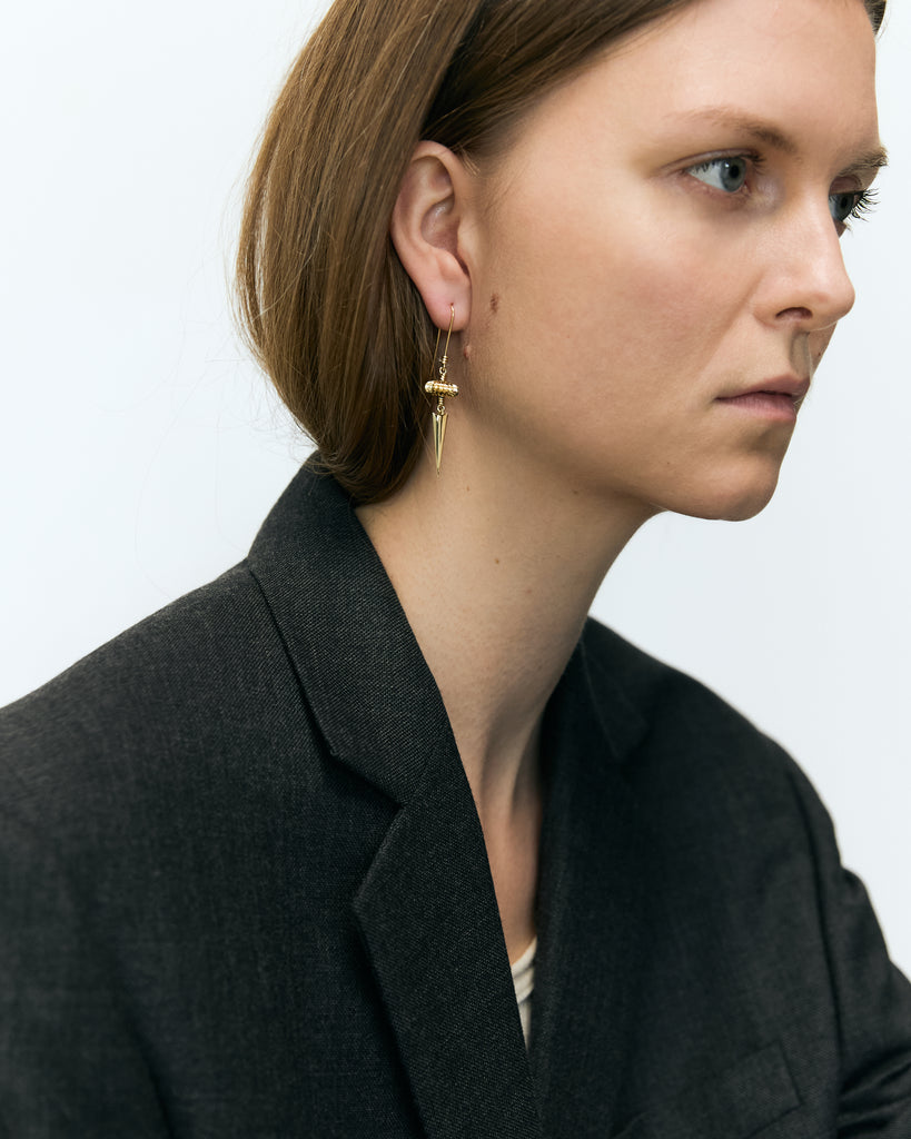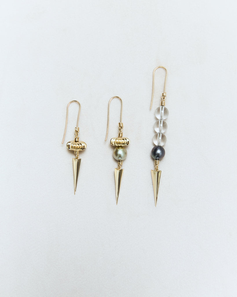 Composed of 18k gold, the pendulum earrings come in three variations.