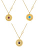 The Bullseye Pendant is 28mm in diameter (approx 1 ¼”) with either 8mm cabochon Ruby (approx 3.25 ct), Turquoise or Grey Pearl.